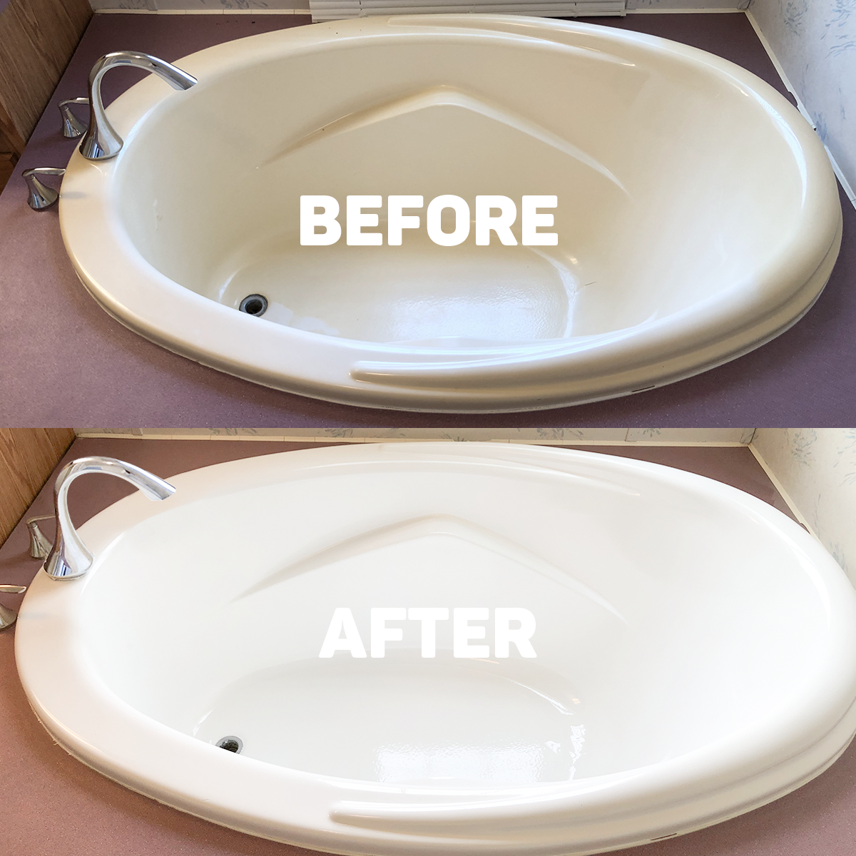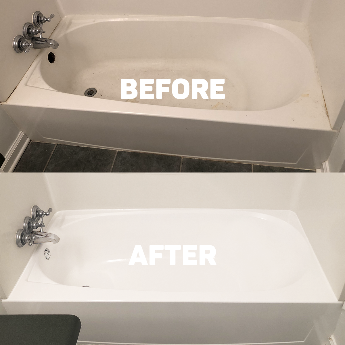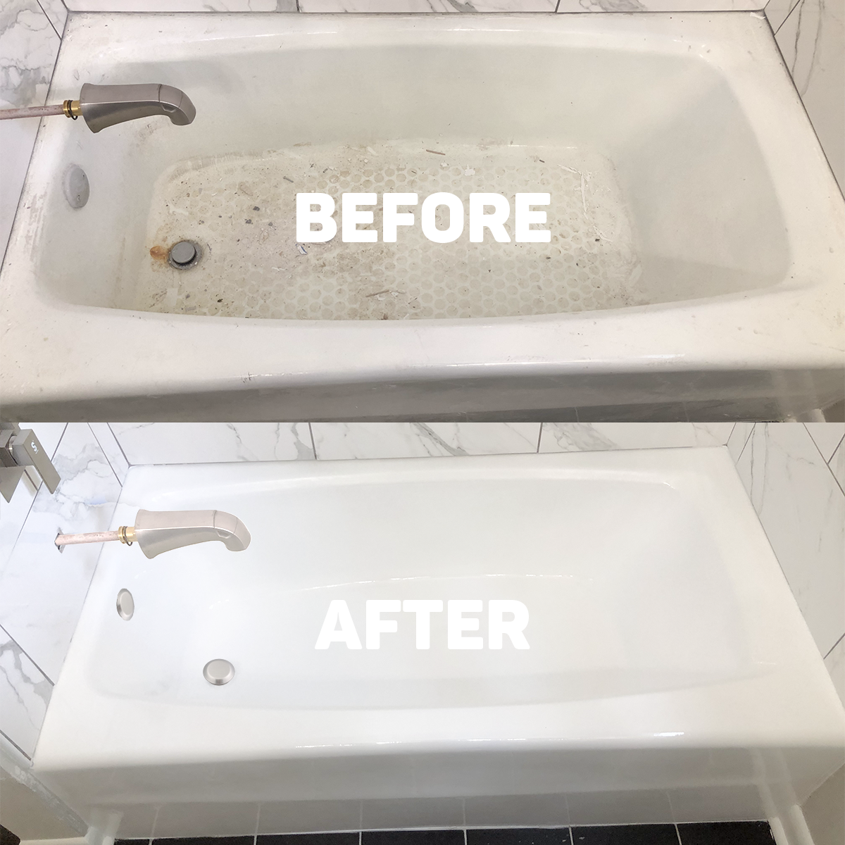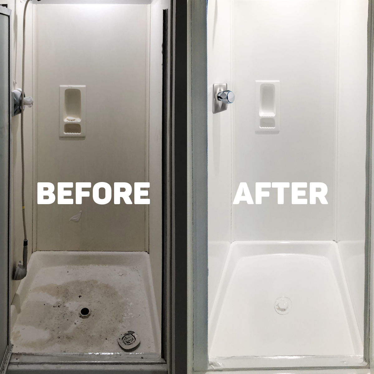 We start by deep-cleaning your surface with professional-grade cleaners to remove dirt, soap scum, stains, and oils. For surfaces like porcelain or